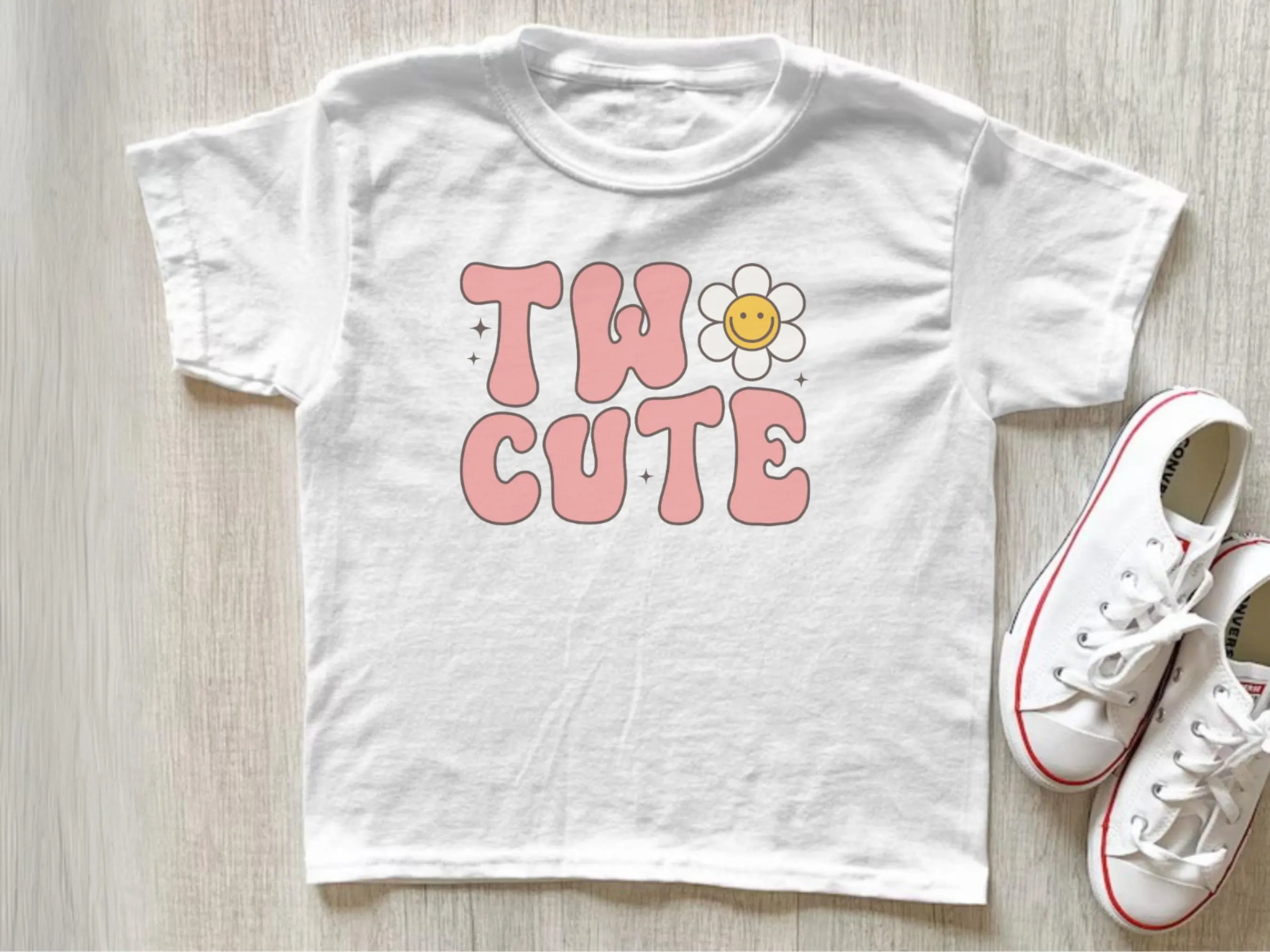 Two Cute Birthday T Shirt Celebration Daisy Toddler Girl Shirt Outfit 2-Year-Old Top Birthday Gift idea Nephew Tee Neice Blue Natural Tee Gift idea