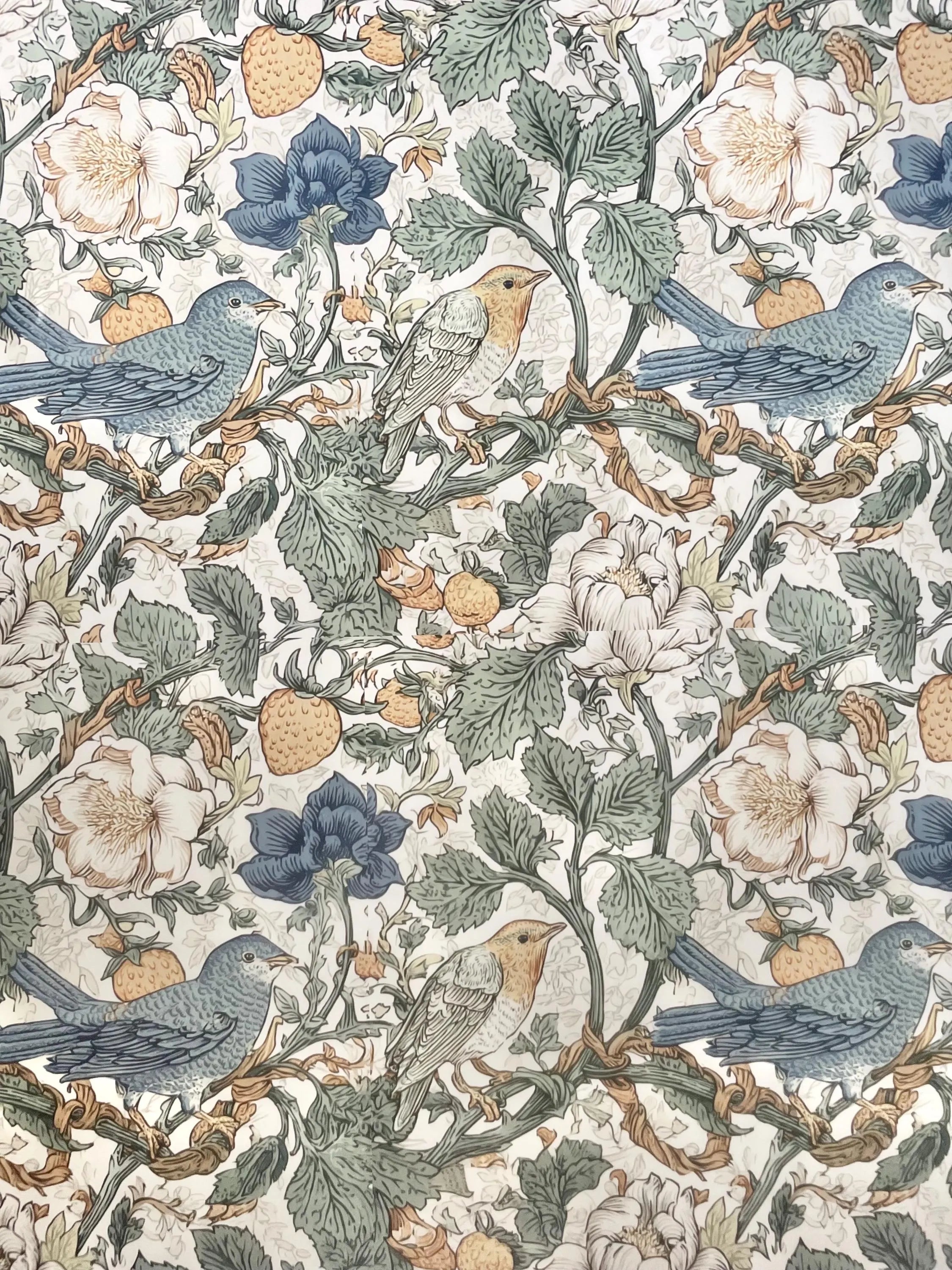 Cottage Core Wrapping Paper Whimsical Fruit Pattern Bird Tree Vine Floral Gift Wrap Forest Core Bridal Shower Strawberry Anniversary Occasion