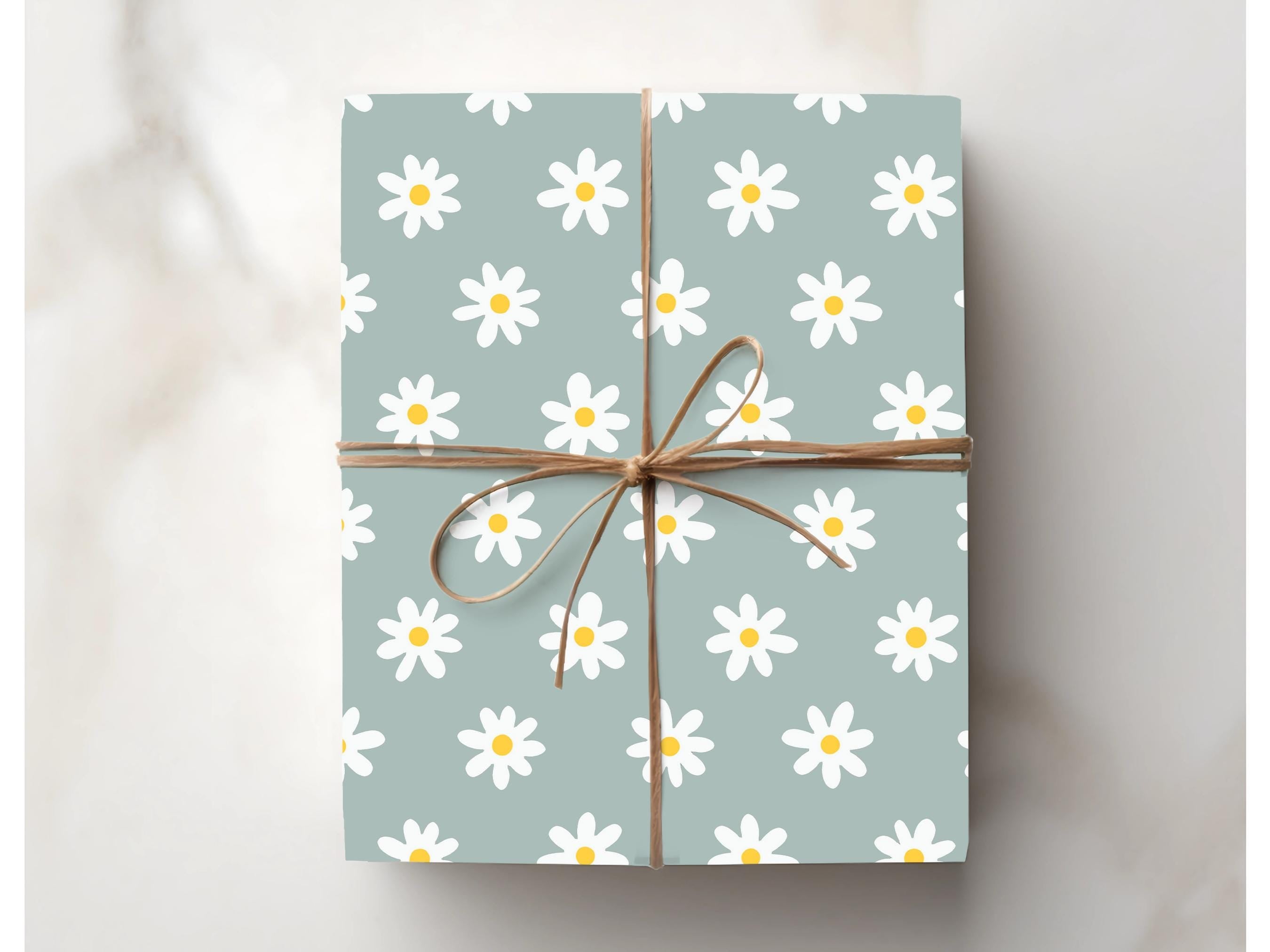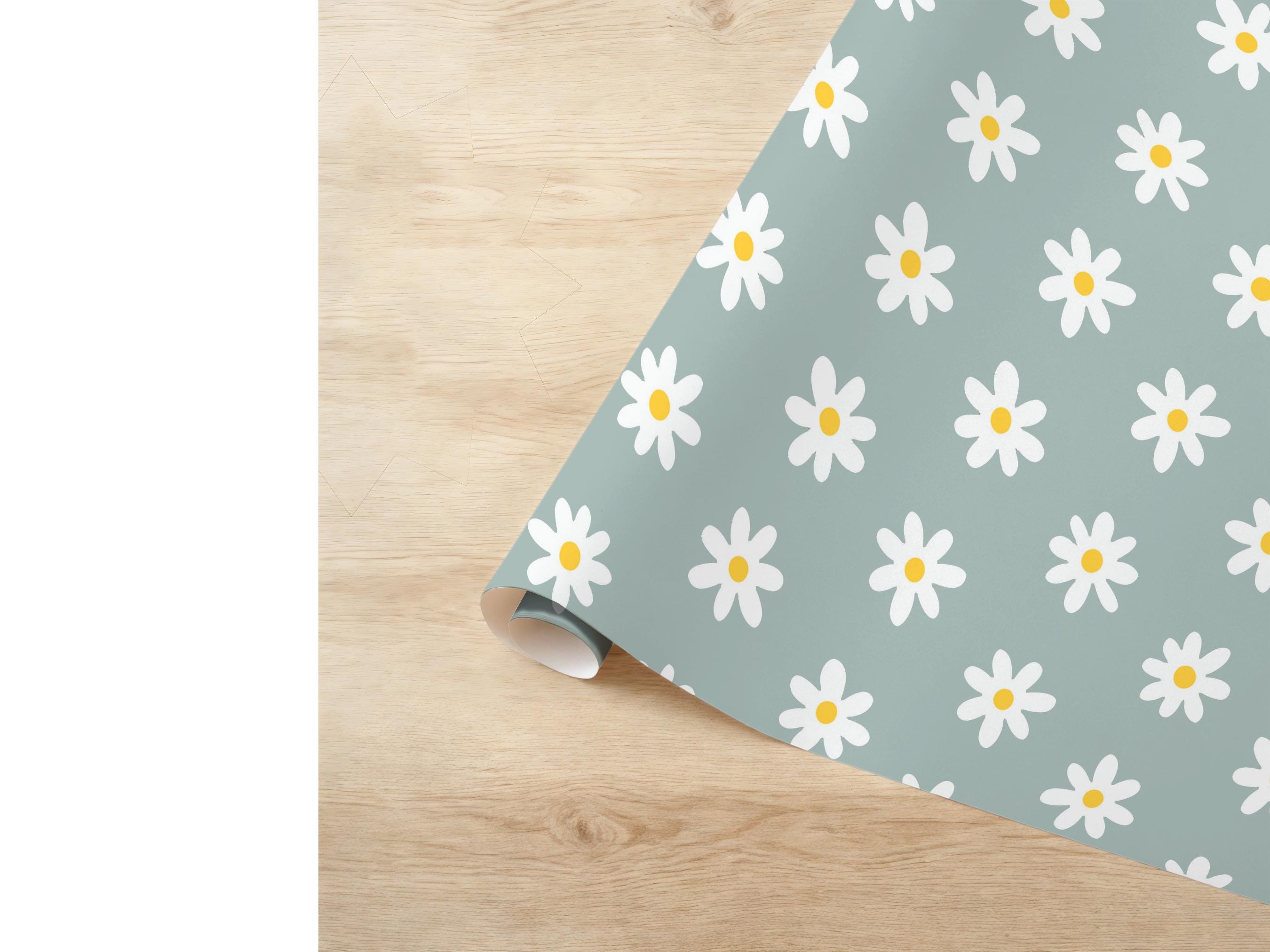 Daisy Wrapping Paper Floral Pattern Gift Wrap Special Occasion Nature Inspired Packaging for Birthdays Wedding Retro Flower Cute Blue Summer