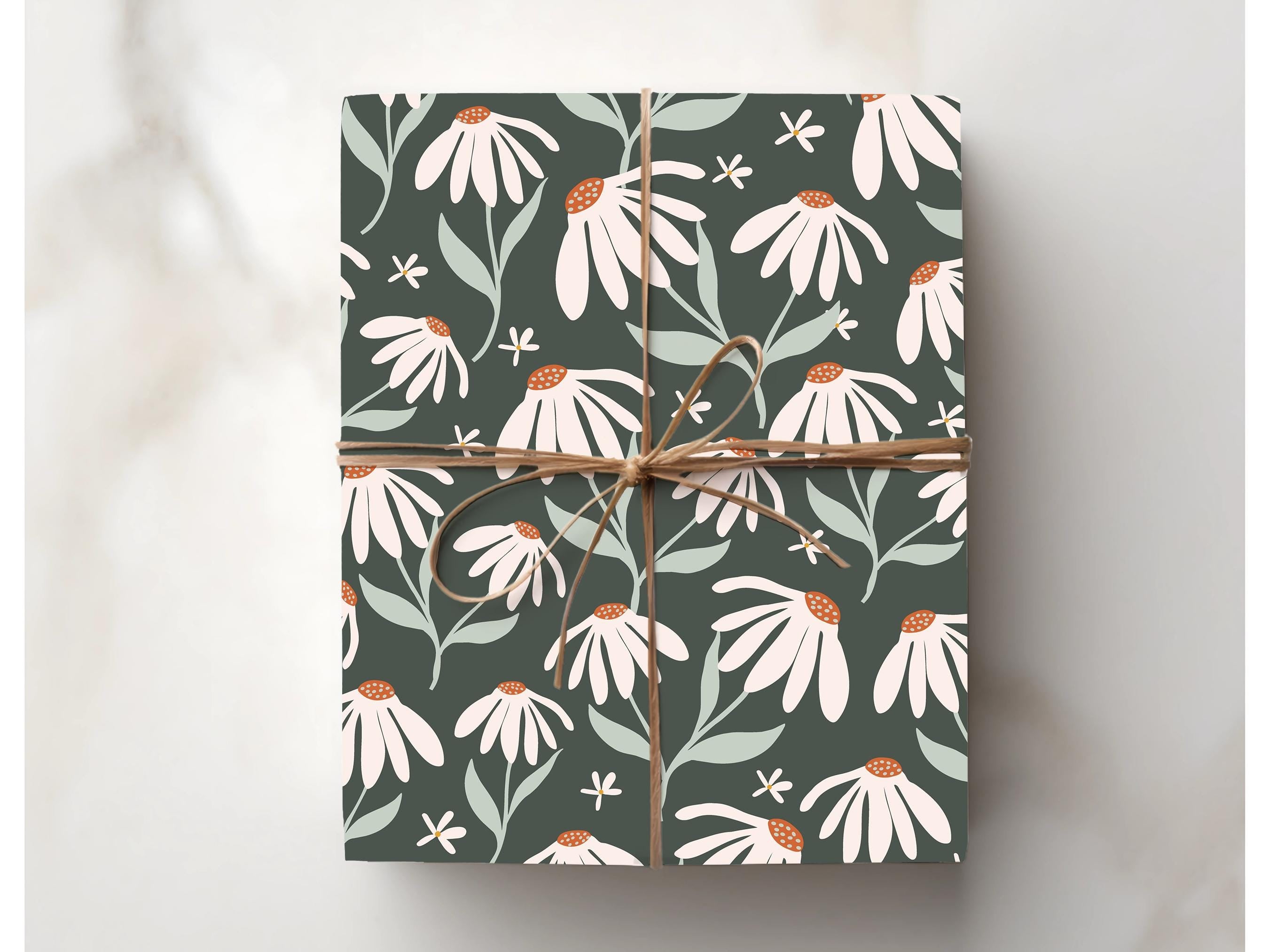 Dandelion Wrapping Paper Pattern Floral Gift Wrap Special Occasion Nature Inspired Package Birthday Wedding Forest Green Bridal Shower Baby