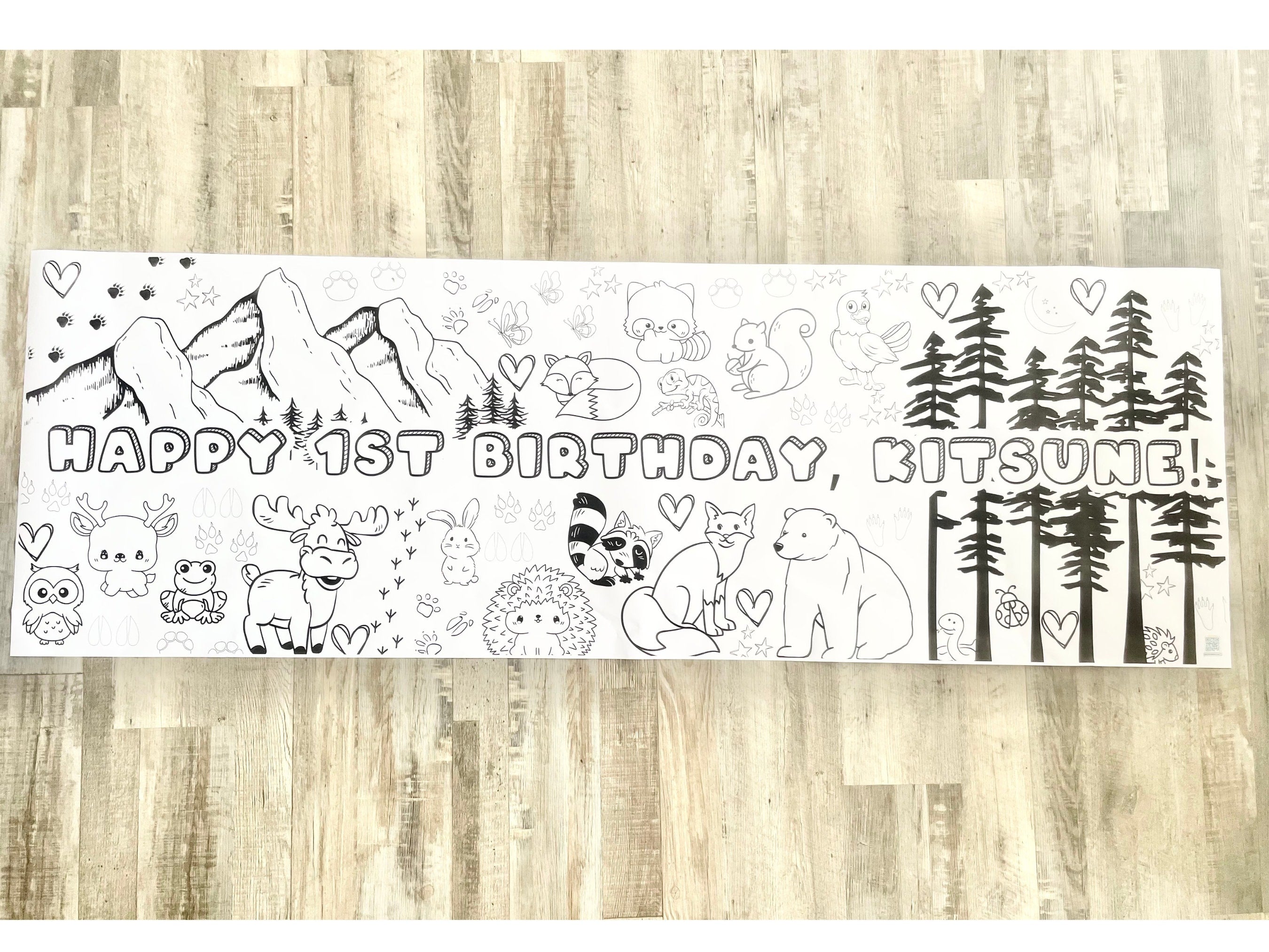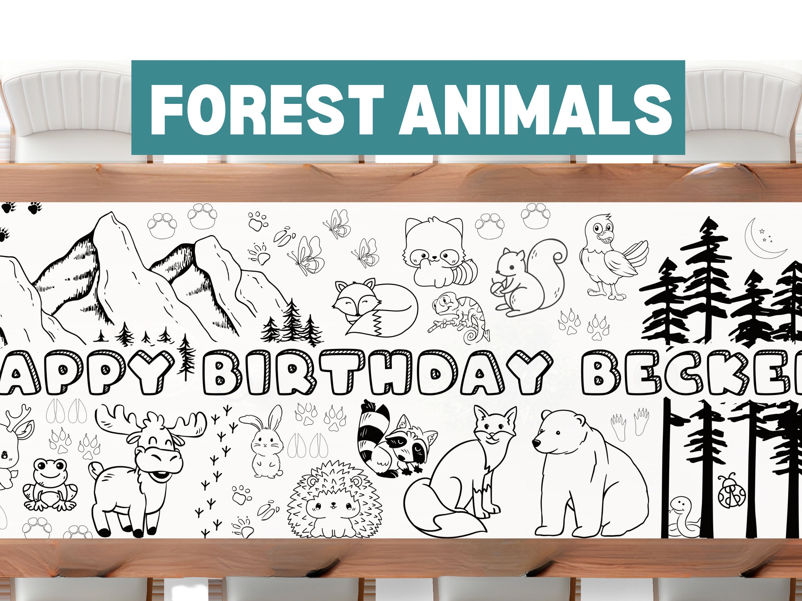 LARGE 6-foot Coloring Banner Forest Animal Woodland Personalized Birthday Poster Table Cover Custom Paper Tablecloth Parties 24"x72"