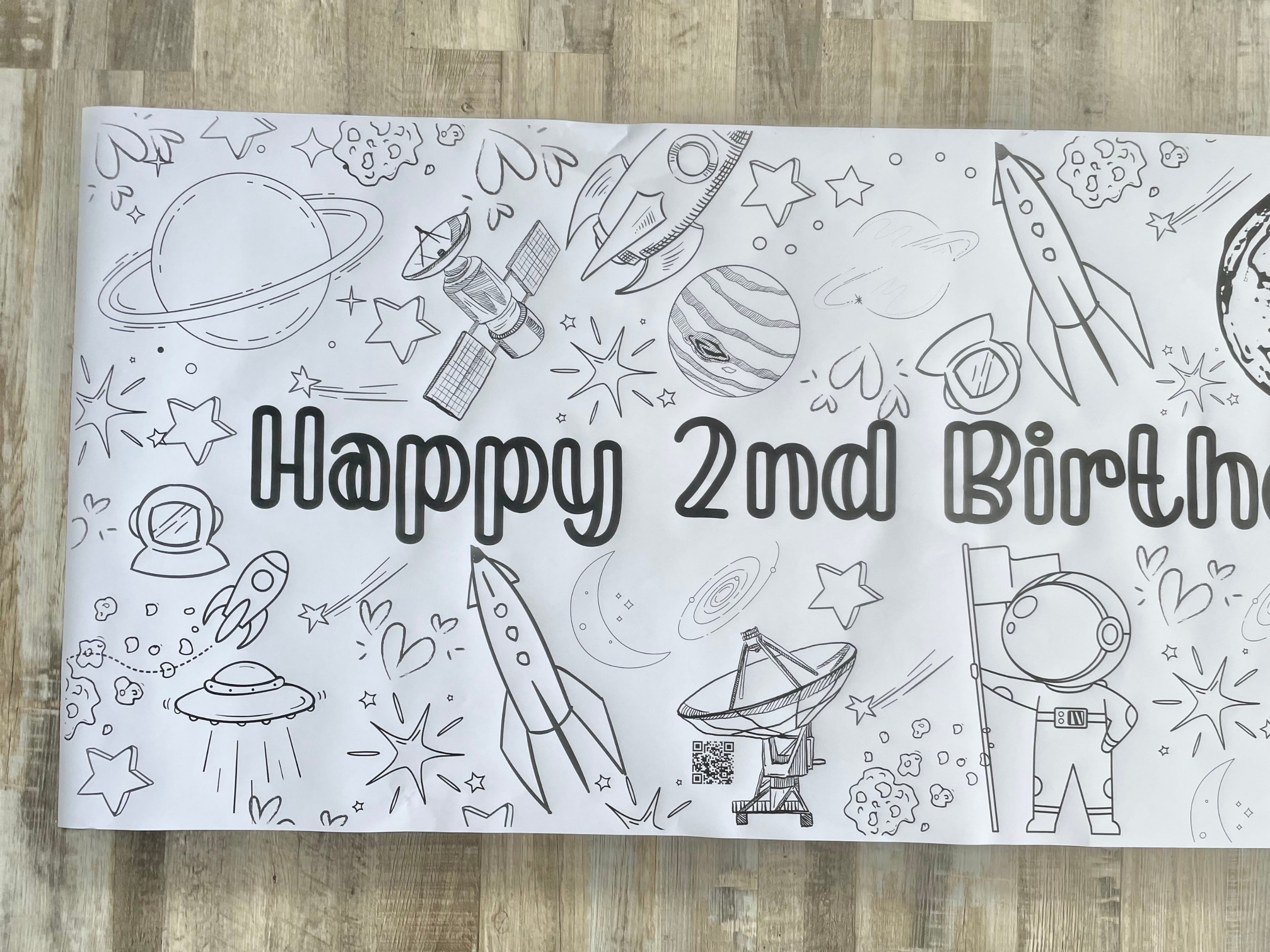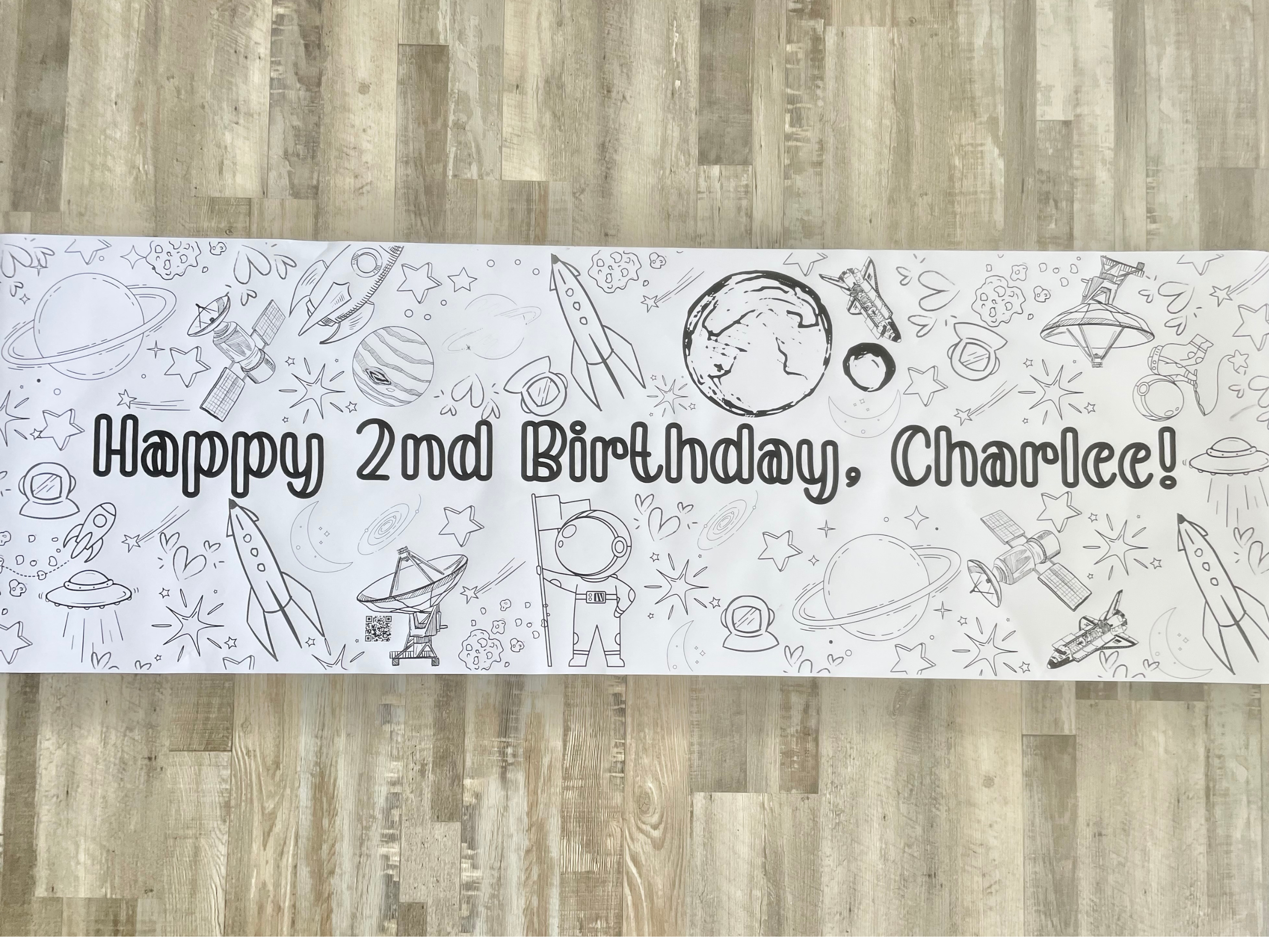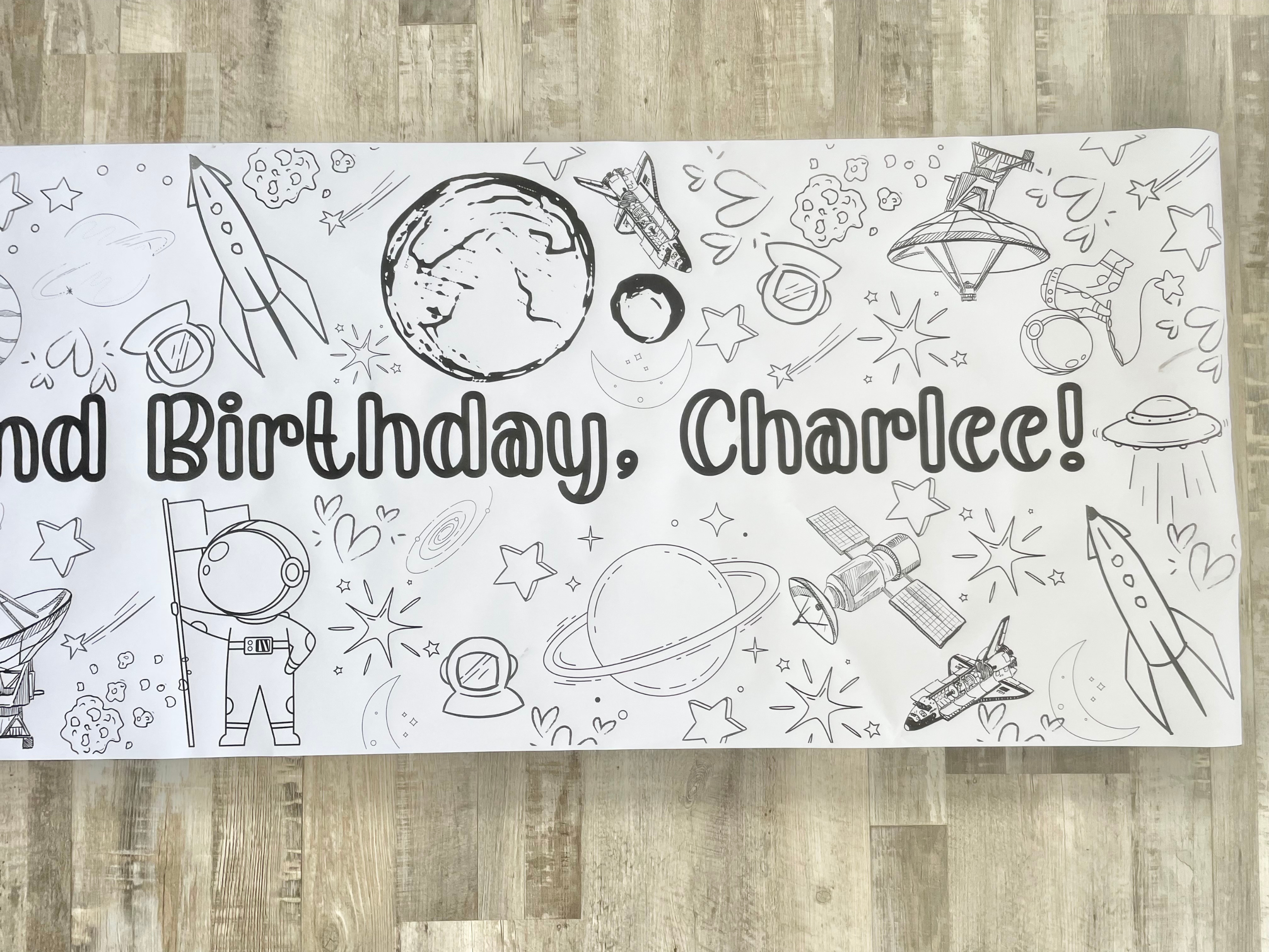 LARGE 6-foot Outer Space Theme Coloring Banner Personalized Birthday Poster Table Custom Birthday Solar System for Party Sheet 72 Astronaut