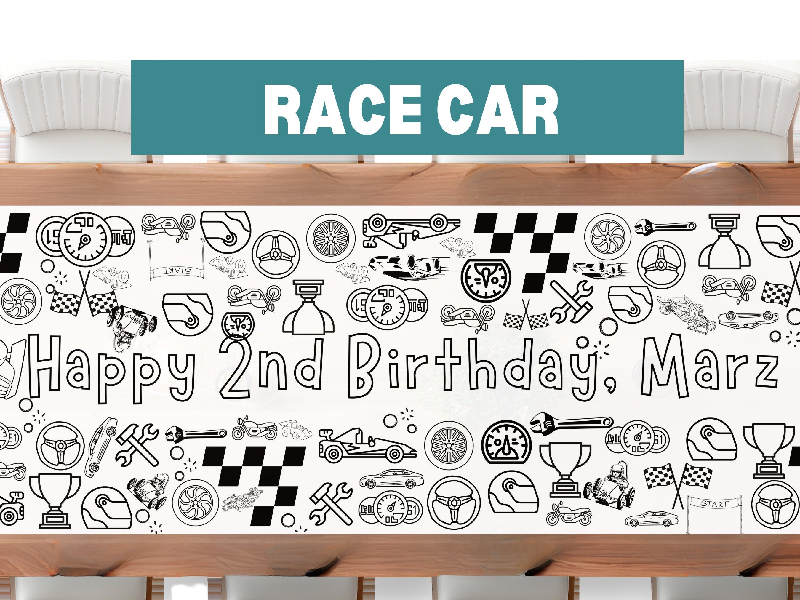 LARGE 6-foot Race Car Theme Coloring Banner Personalized Birthday Poster Table Custom Roadster Checkered Birthday Tablecloth Party ideas 72"