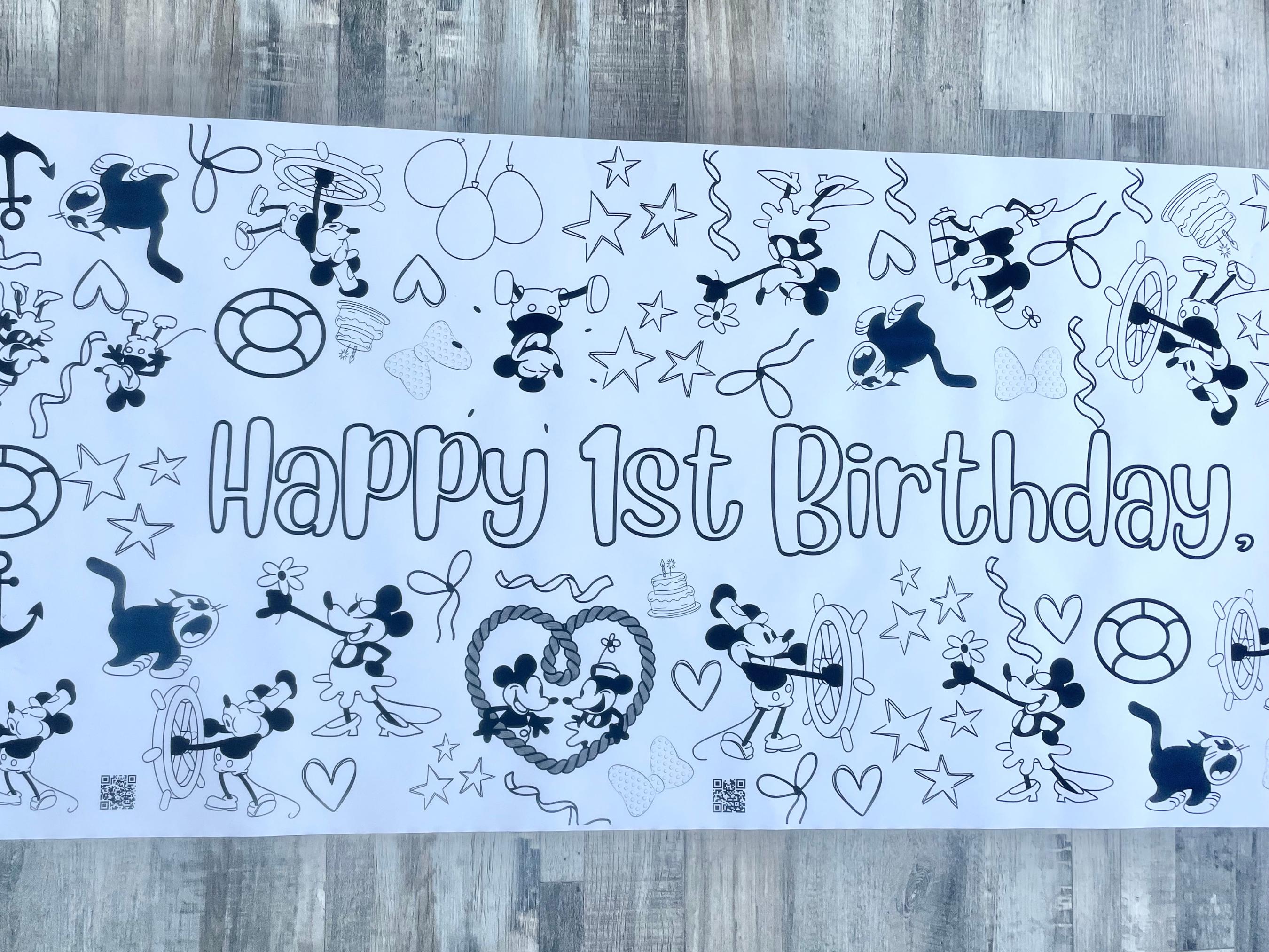 • Personalized 6 Foot Steam Boat Willie Coloring Banner Kid Birthday Activity Custom Name Poster Tablecloth for Party Supplies Busy Toddler