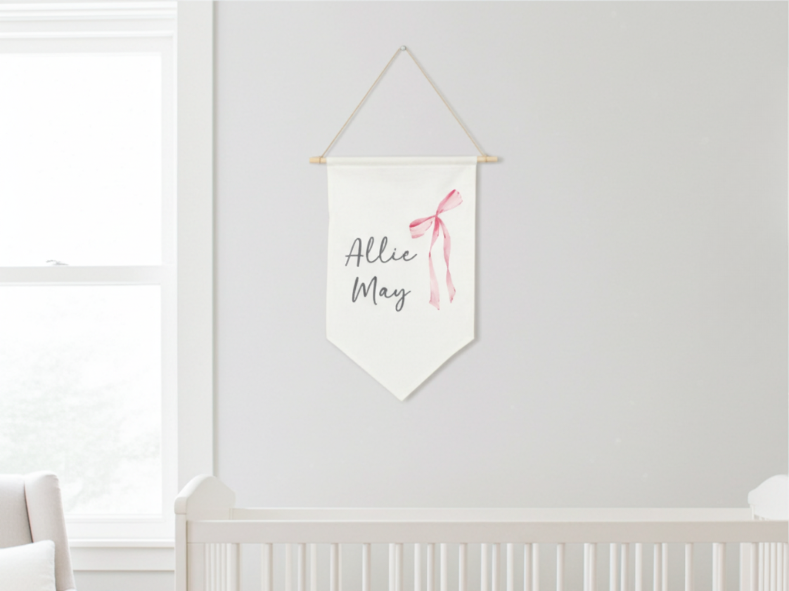 This beautifully crafted canvas sign features a high-quality, soft fabric material and a sturdy wooden stick for easy hanging. Perfect for adding a personal touch to a child's nursery, birthday party decorations, or any special occasion. Customizable with your unique name or message, this handmade banner makes a thoughtful and memorable gift. Ideal for creating a warm, welcoming atmosphere in any room. A must-have personalized decor piece for kids' rooms, playrooms, or as a thoughtful gift for new parents!