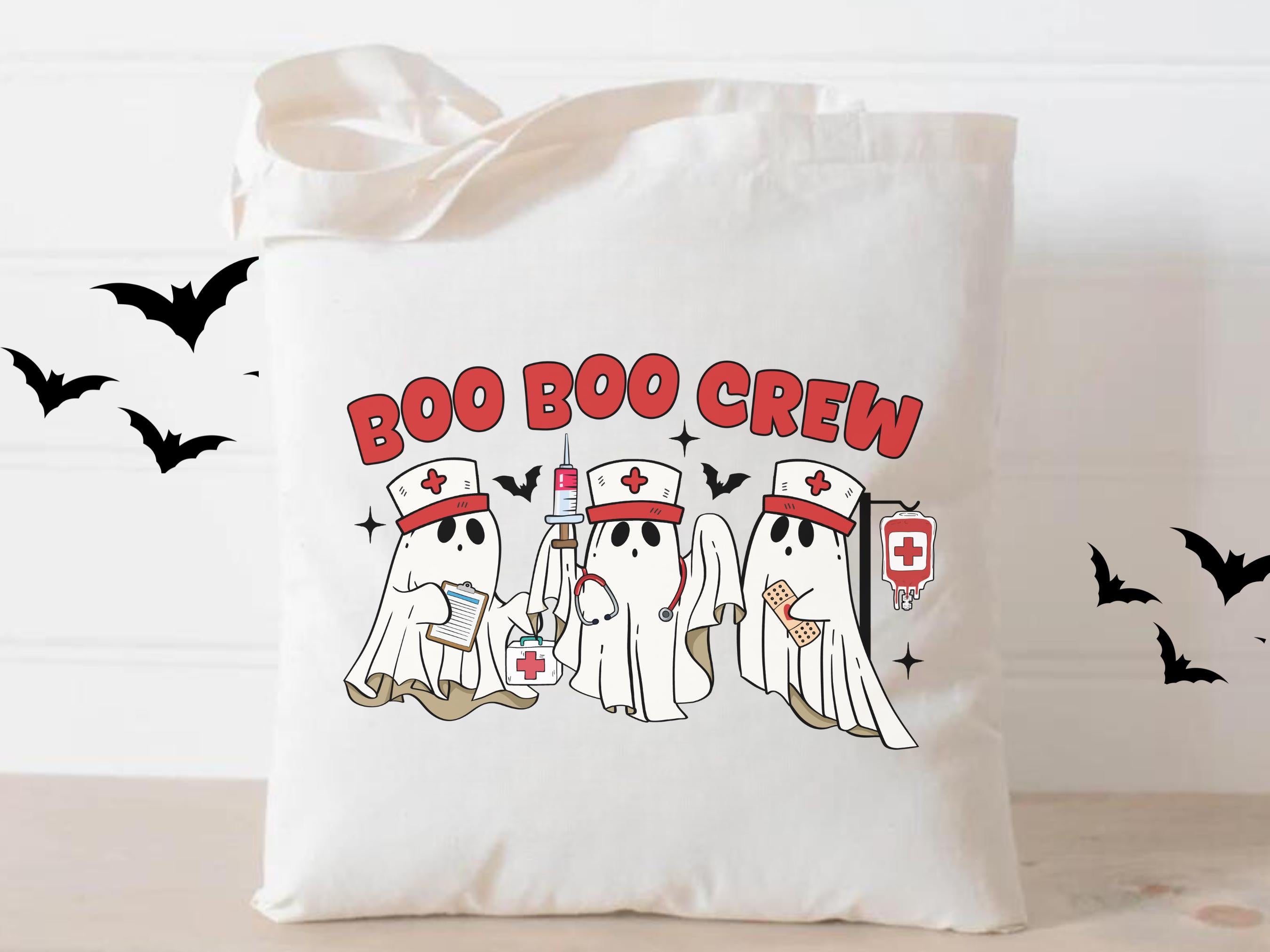 Boo Boo Crew Nurse Halloween Bag Gift Idea Eco friendly Bag Nurse School Bag Retro Trendy Cute Doctor Bag Reusable Ghost Practitioner