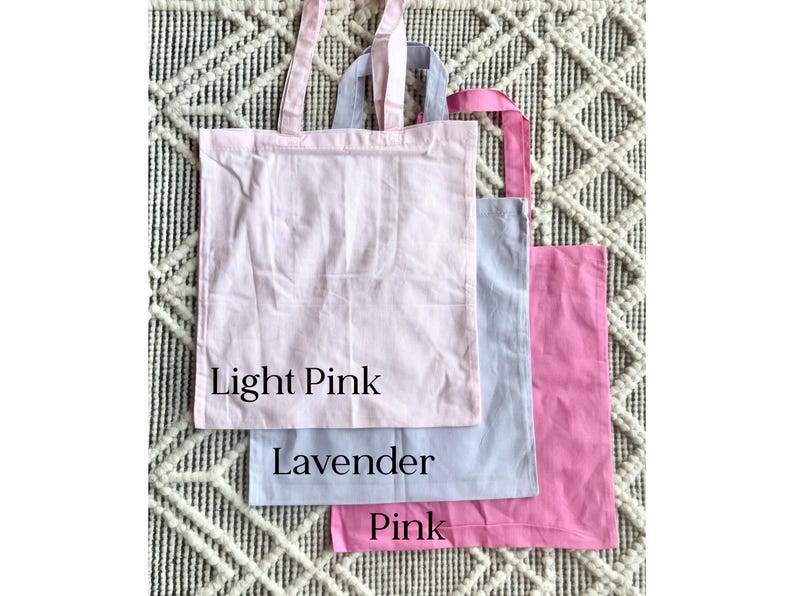 Personalized Name Tote Bag Pink Bridesmaid Lavender Custom Girl Party Birthday Trip Party Favor Maid of Honor Library School Roommate Gift