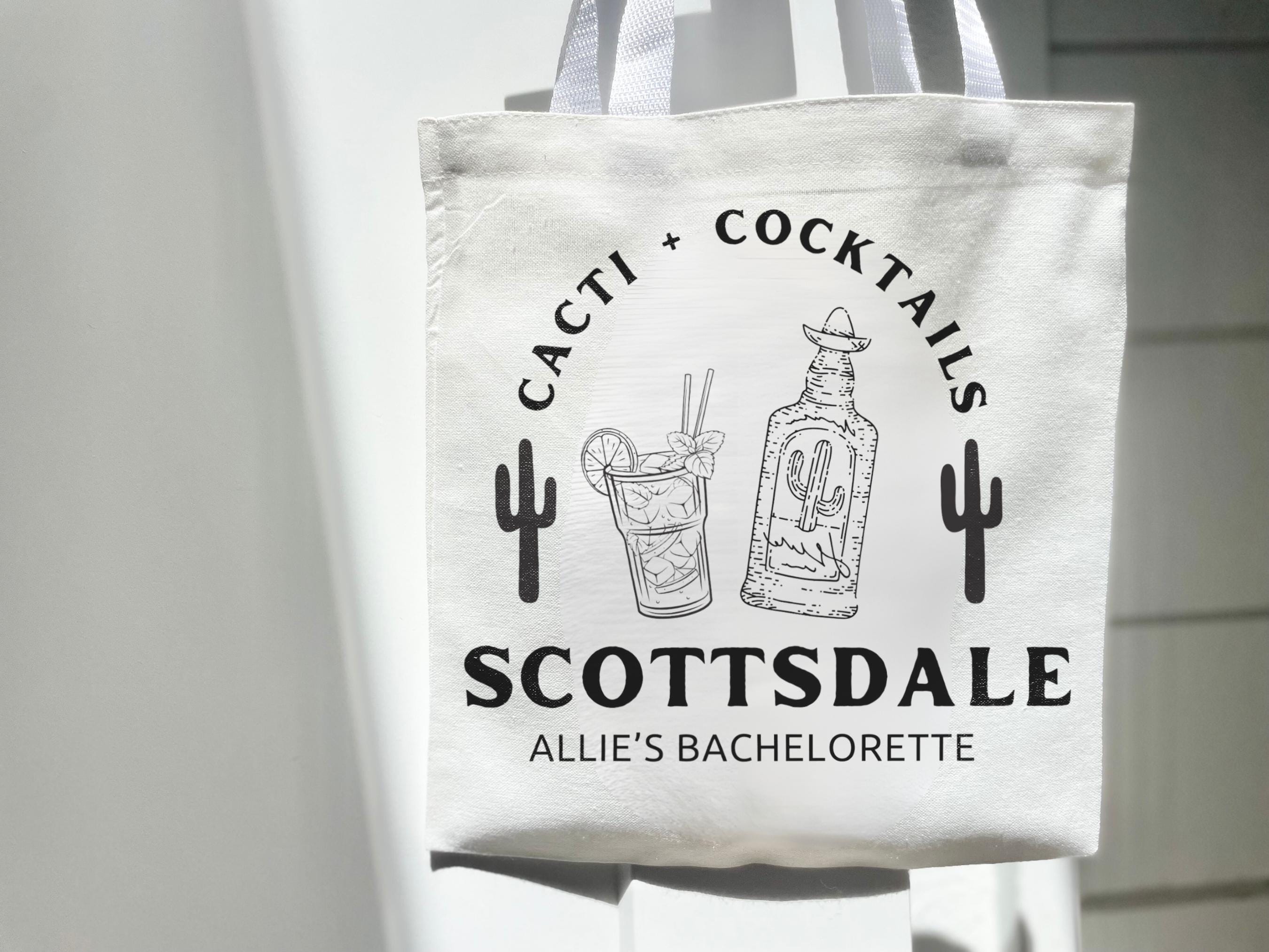 Desert Scottsdale Bach Party Gift Tote Bag Cacti and Cocktails Drink Responsibly Eco Friendly Grocery Arizona Wedding Favor Bachelorette
