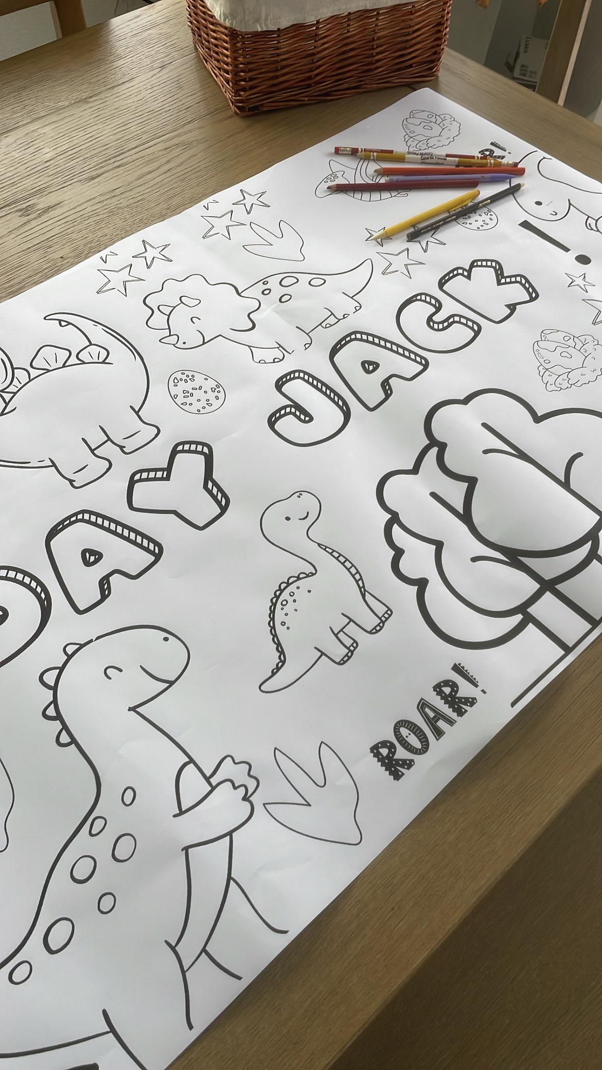 LARGE 6-foot Coloring Banner Dinosaur Theme Personalized Birthday Poster Table Cover Custom Paper Tablecloth Parties 24"x72"