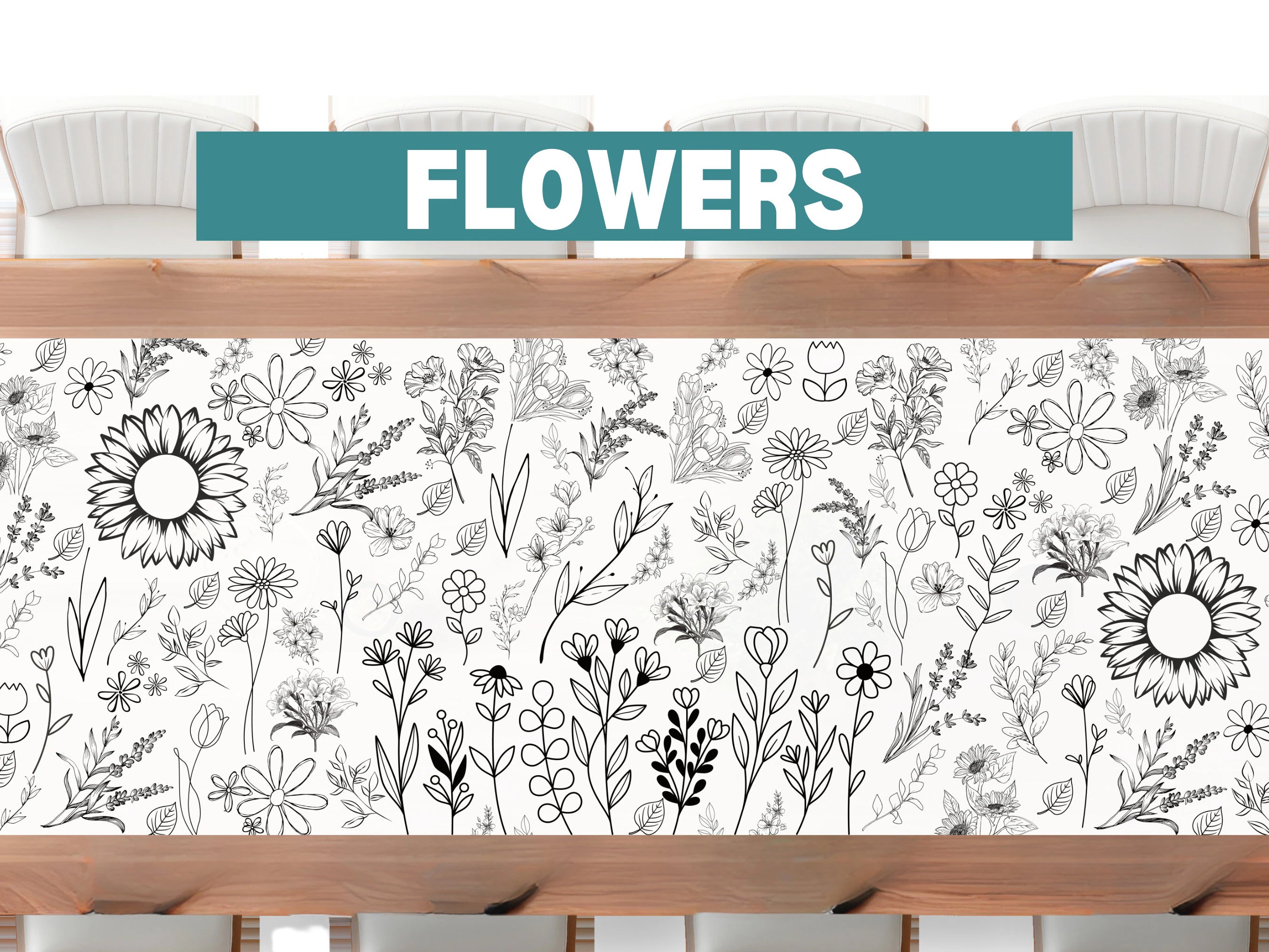 6foot Wildflower Flower Daisy Lavender Eucalyptus Coloring Banner Adult Coloring Birthday Whimsical Custom Kid party Paper Tablecloth Garden