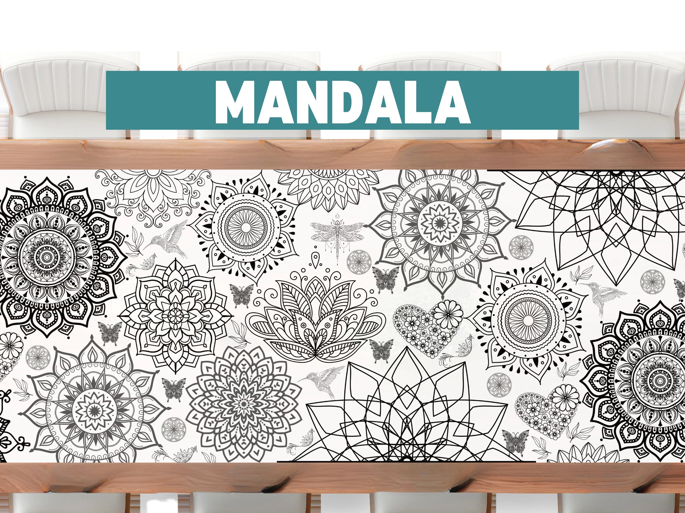 Large Mandala Coloring Banner Coloring Poster Tablecloth for Party Sheet Therapy Patterns Geometry Yantra Circular art Symmetrical Mantra