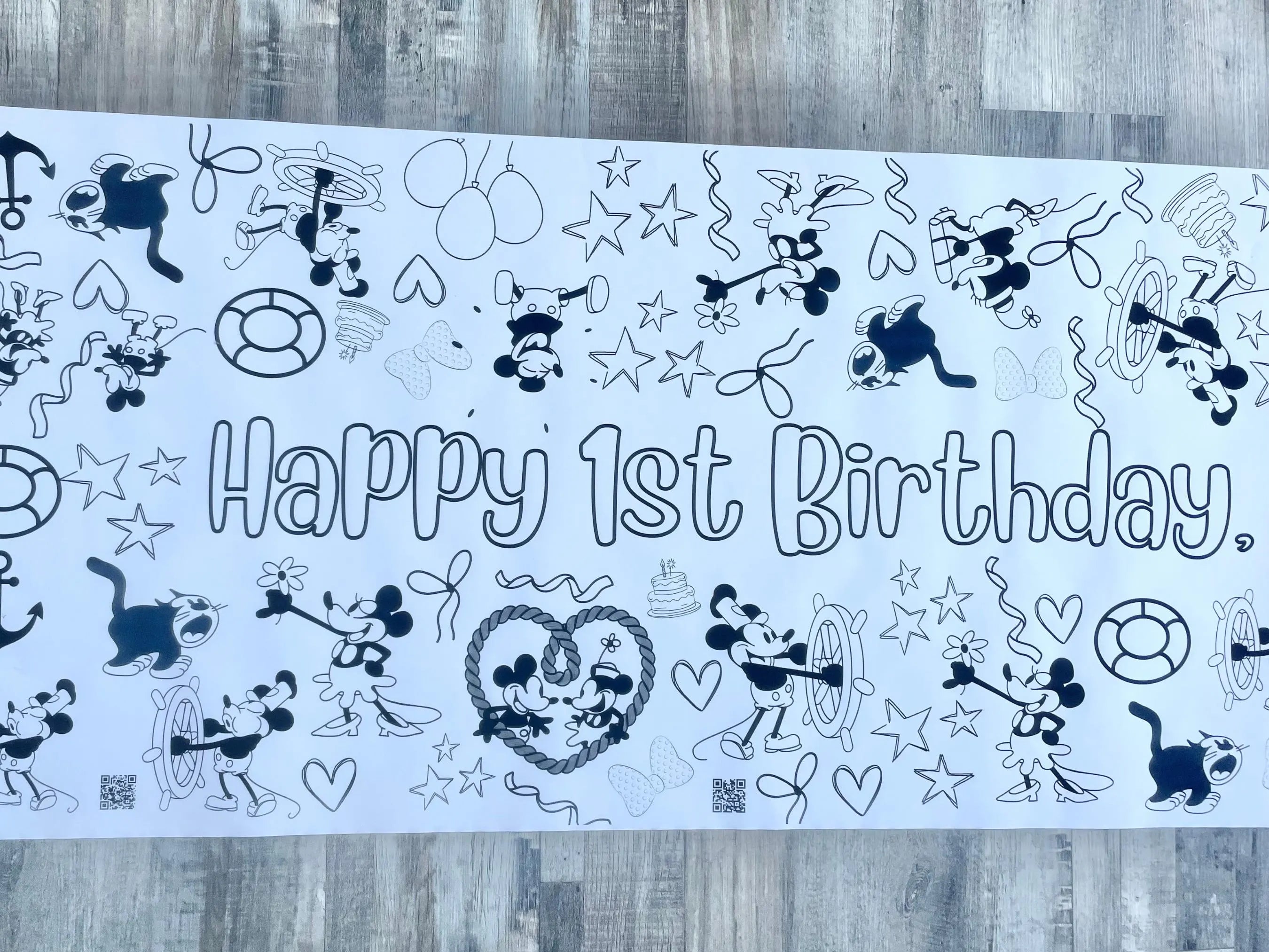 Personalized 6 Foot Steamboat Willie Coloring Banner Kid Birthday Activity Custom Name Poster Tablecloth for Party Supplies Busy Toddler