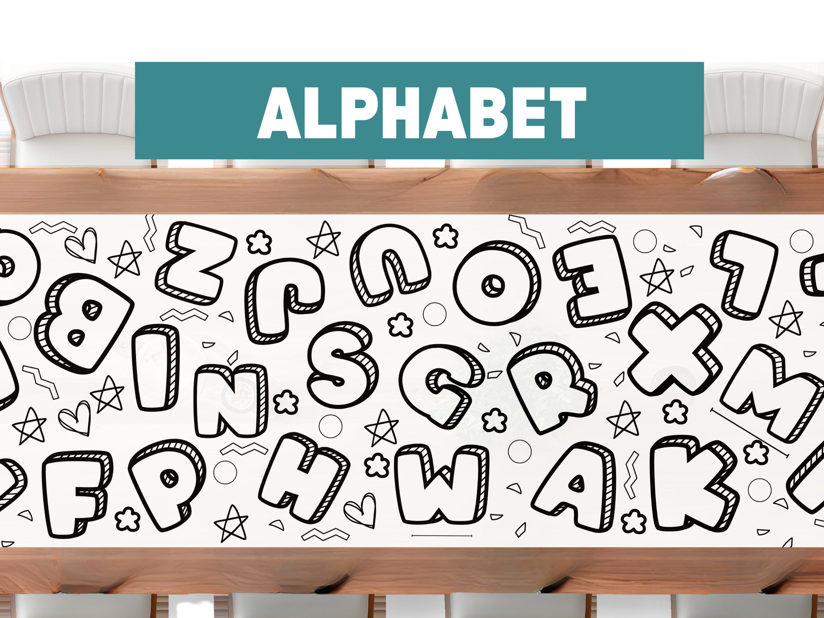 LARGE 6-foot Coloring Banner Alphabet Educational Poster Table Cover Homeschool Paper Learning Parties 24"x72" ABC Letters Preschool