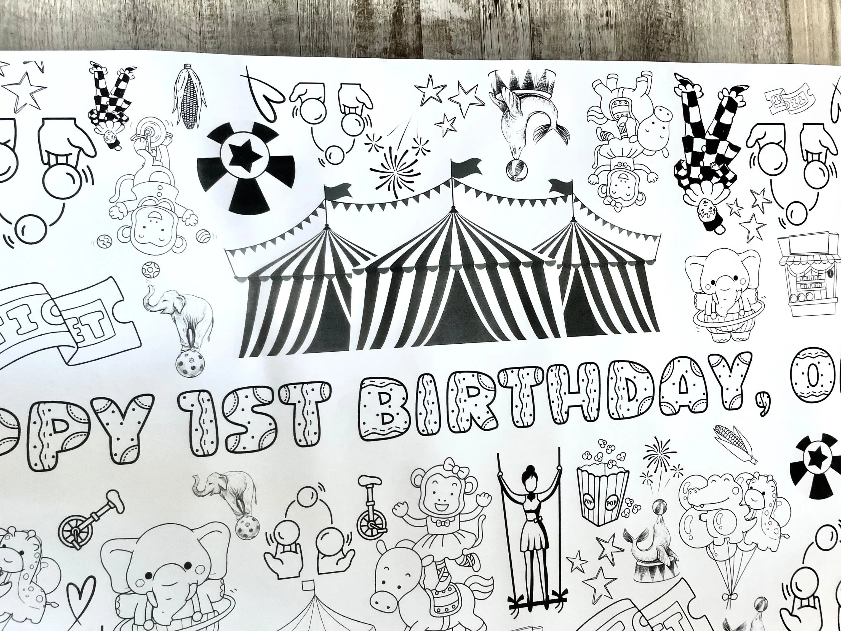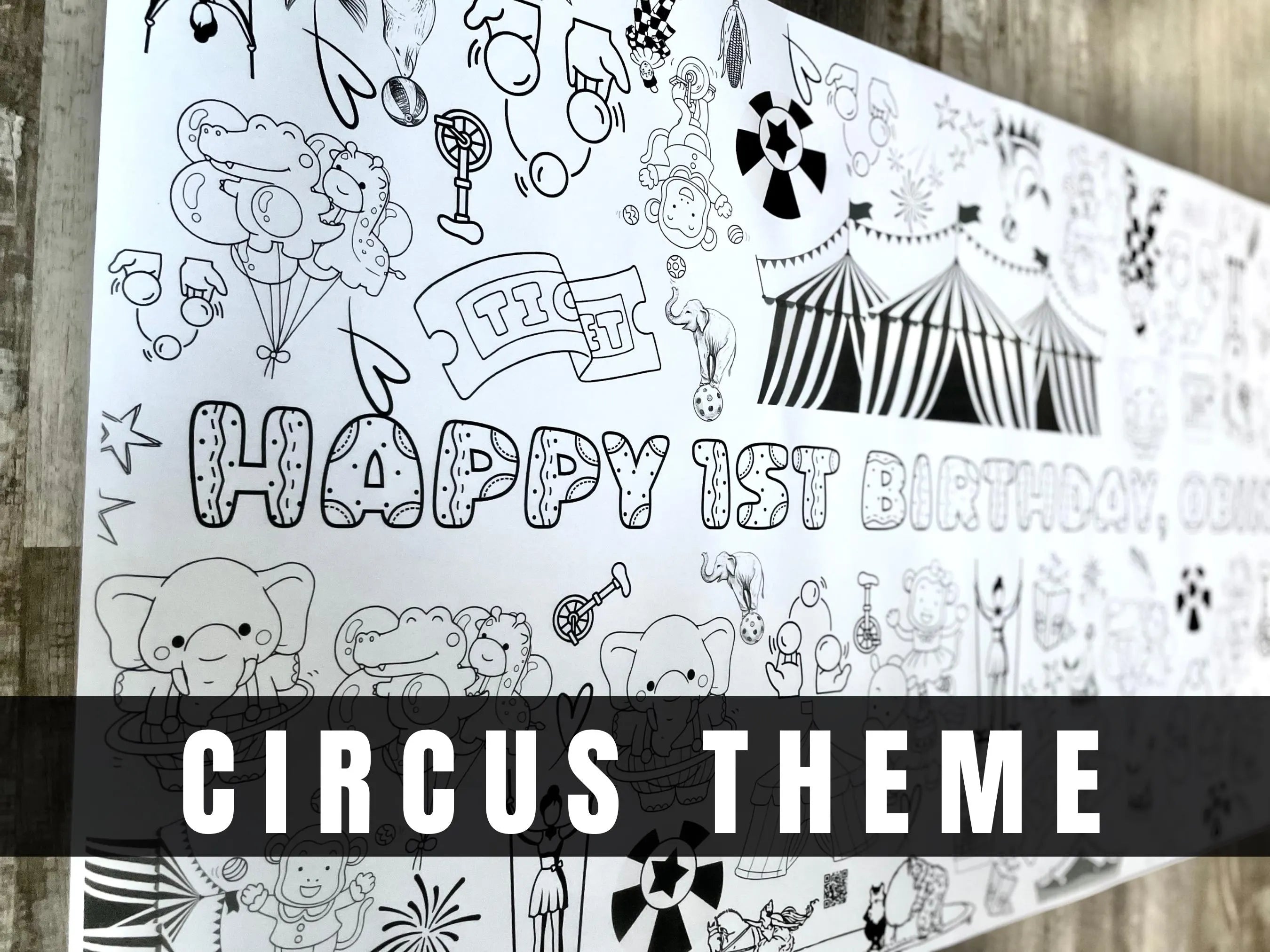LARGE 6-foot Circus Theme Coloring Banner Personalized Birthday Poster Table Custom Carnival Festival Birthday Tablecloth Party ideas 72"