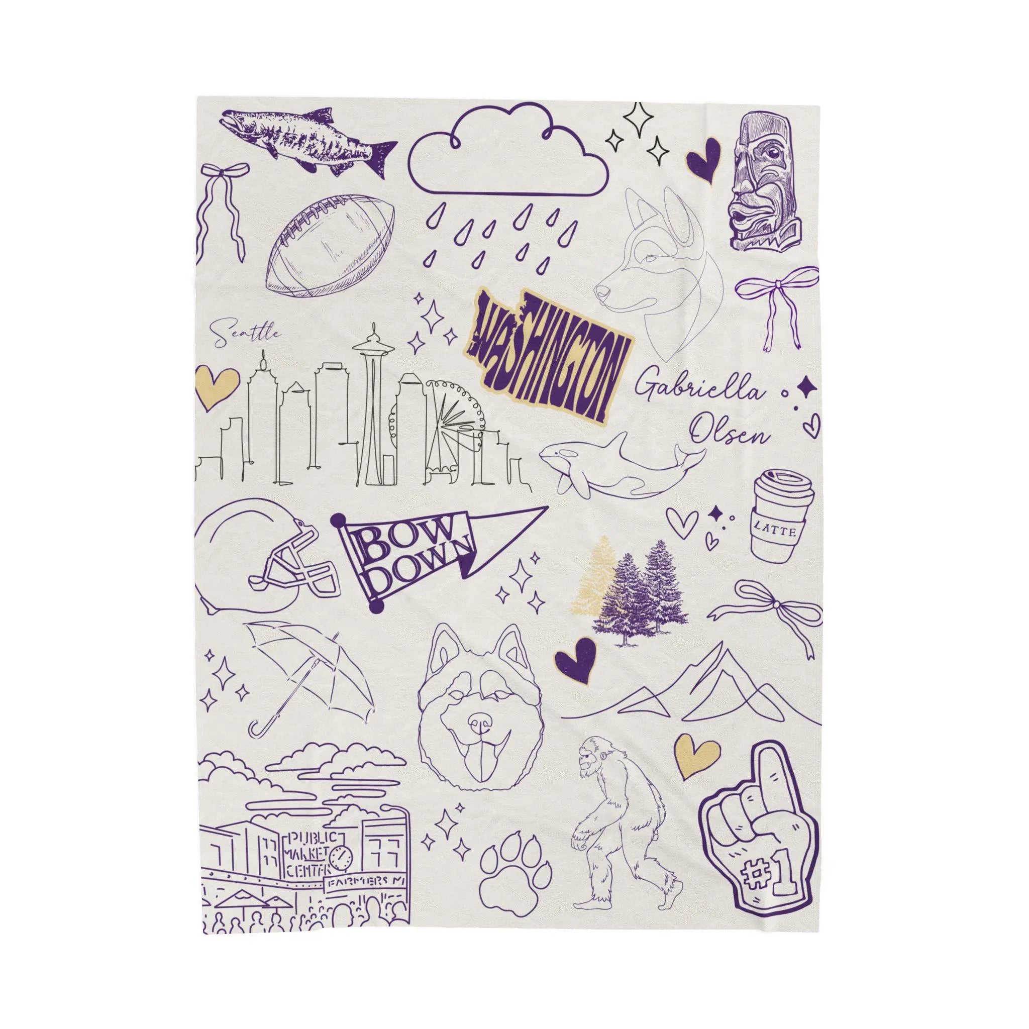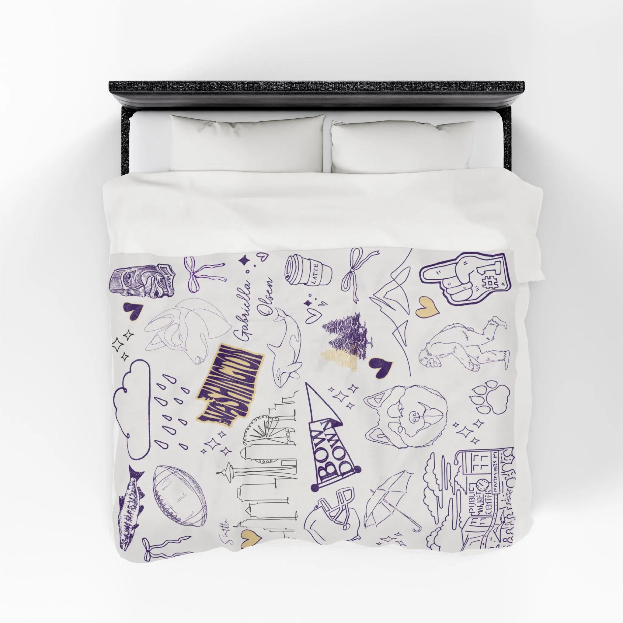 Custom Purple and Gold Plush Throw Blanket Cozy College Spirit Gift Graduation Dorm Decor Personalized Team Color Blanket Christmas Present.