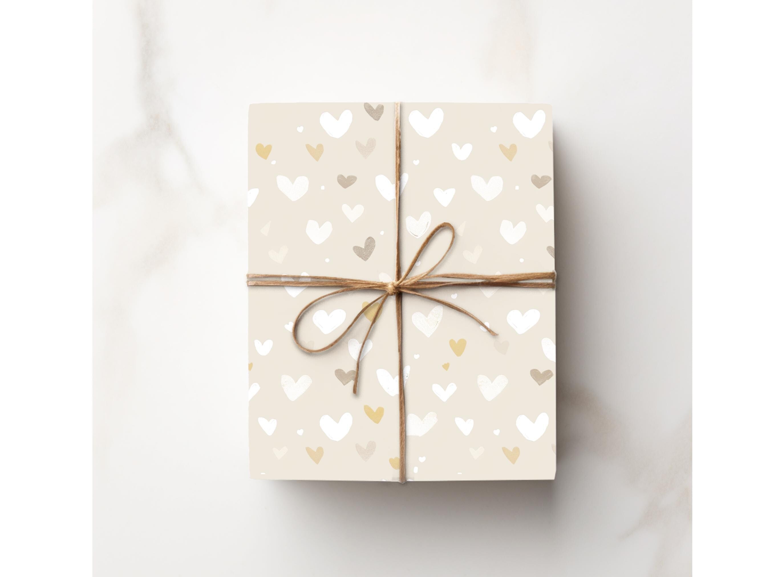 Beige Heart Grey White Gift Wrapping Paper Birthday Paper Wrap Present Gift Wrap Roll 5 Sizes Available Valentine Gift Wrap Watercolor