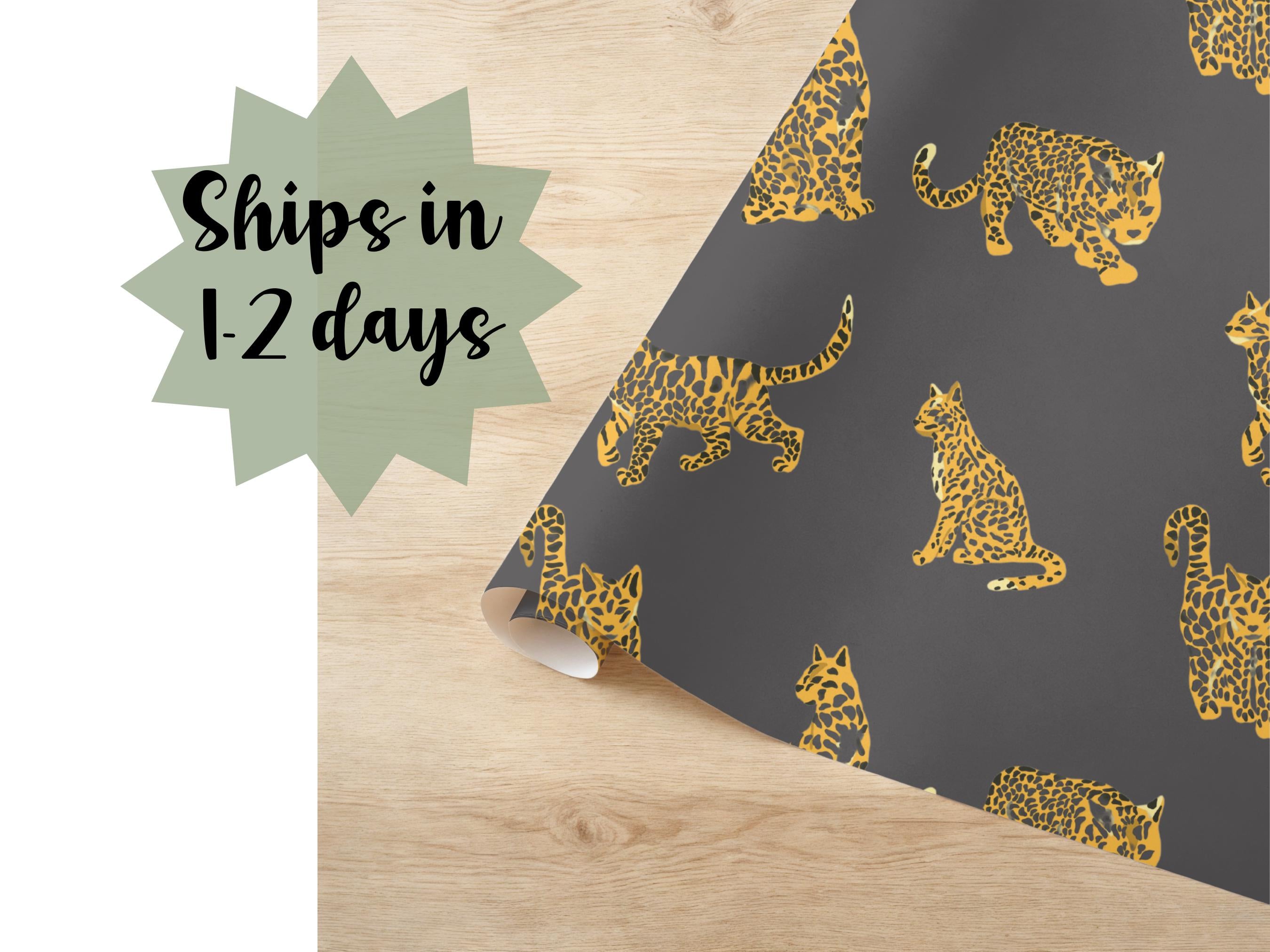 Gold Cheetah Print Gift Wrap Girl Birthday Wrapping Paper Teen Rose Gold Paper Navy Blue Wild Animal Strength Present Covering