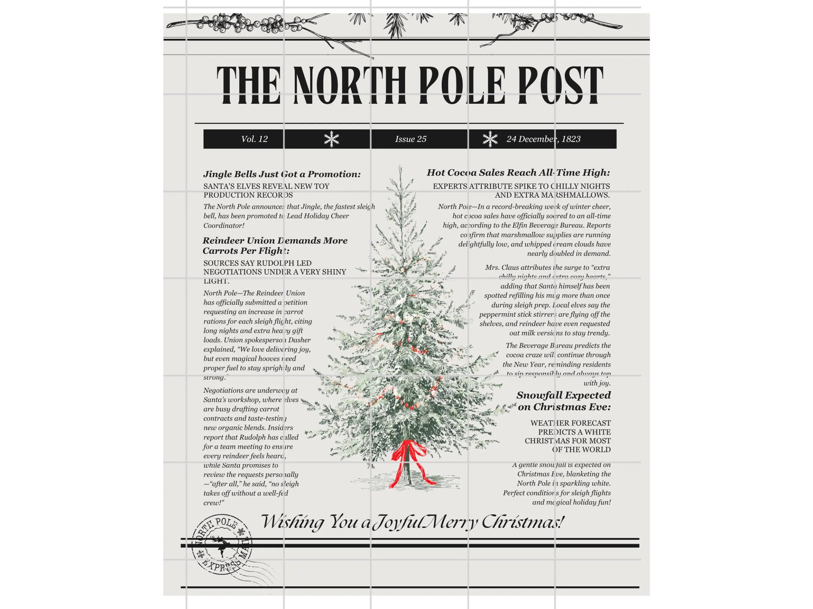 Cute North Pole News Wrapping Paper Fairy-Tale North Pole Post Newspaper Gift Wrap Vintage Holiday Santa Letter Design Whimsical Christmas