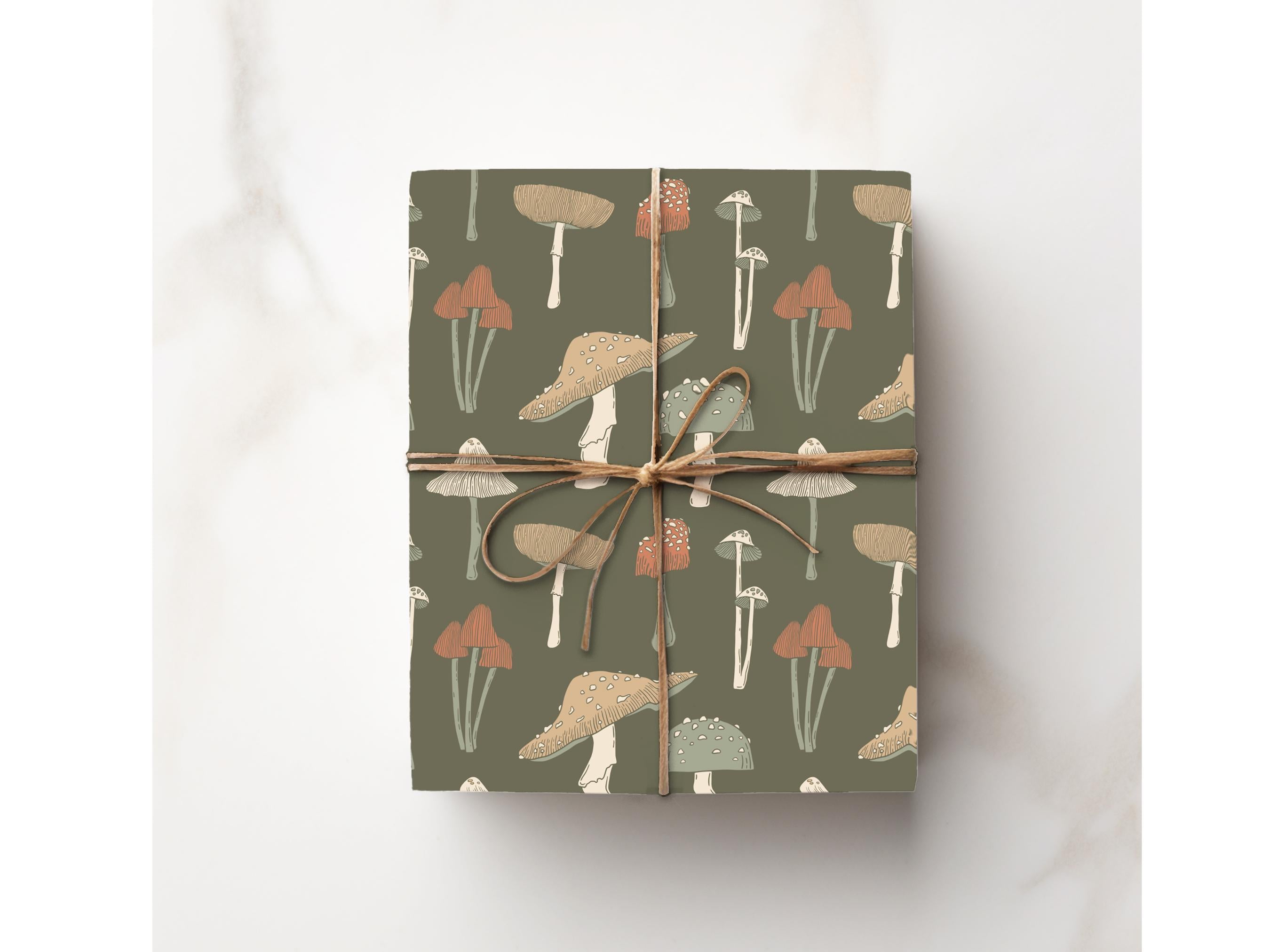 Moss Mushroom Abstract Fungi Gift Wrapping Paper Birthday Paper Wrap Trendy Present Gift Wrap Roll 5 Sizes Available Green Wild Foraged