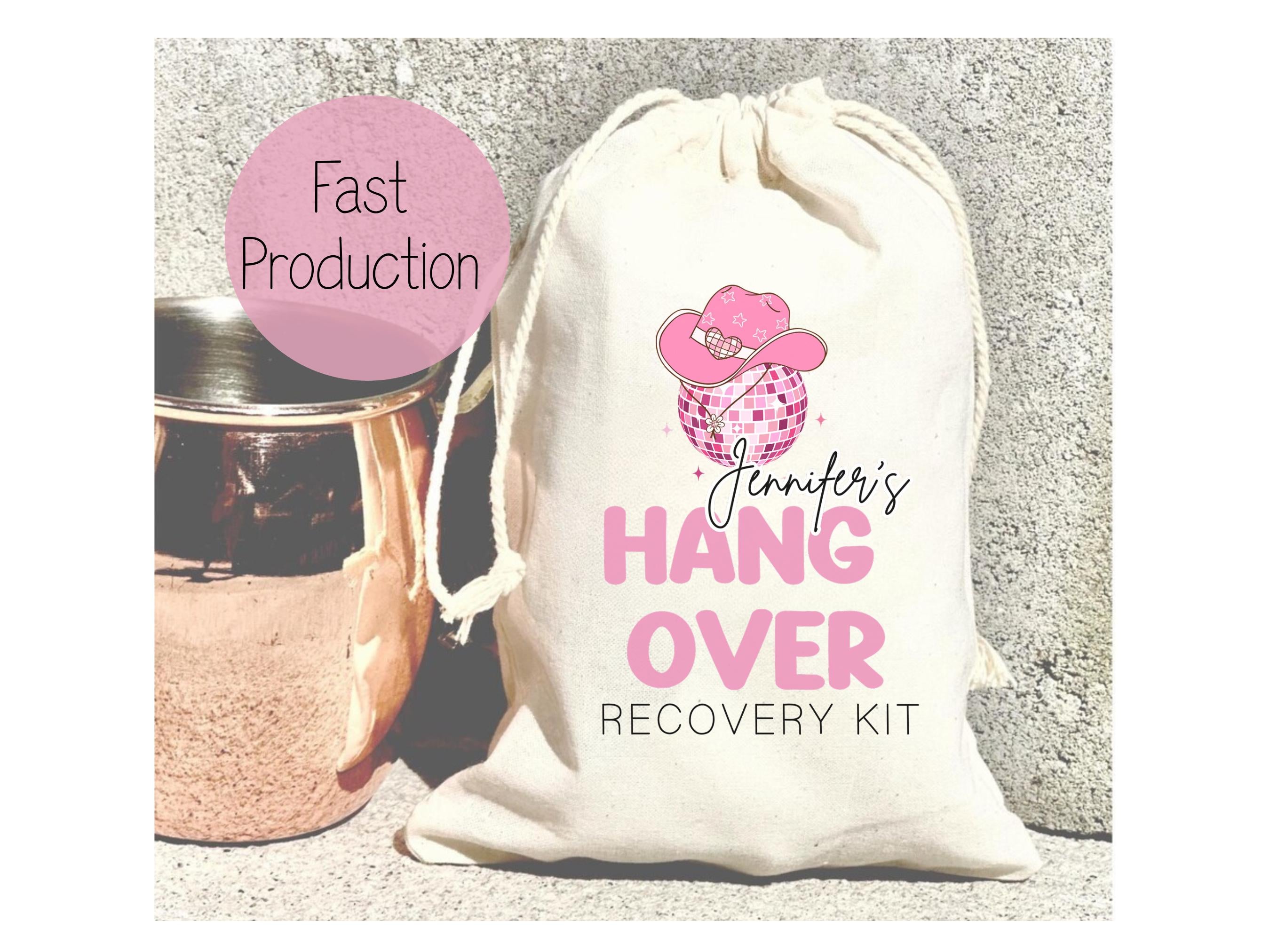 Personalized Bridal Party Hangover Kit Bag Custom Name Bachelorette Disco Pink Goodie Bag Birthday Trip Girls Recovery Kit Survival Cowgirl