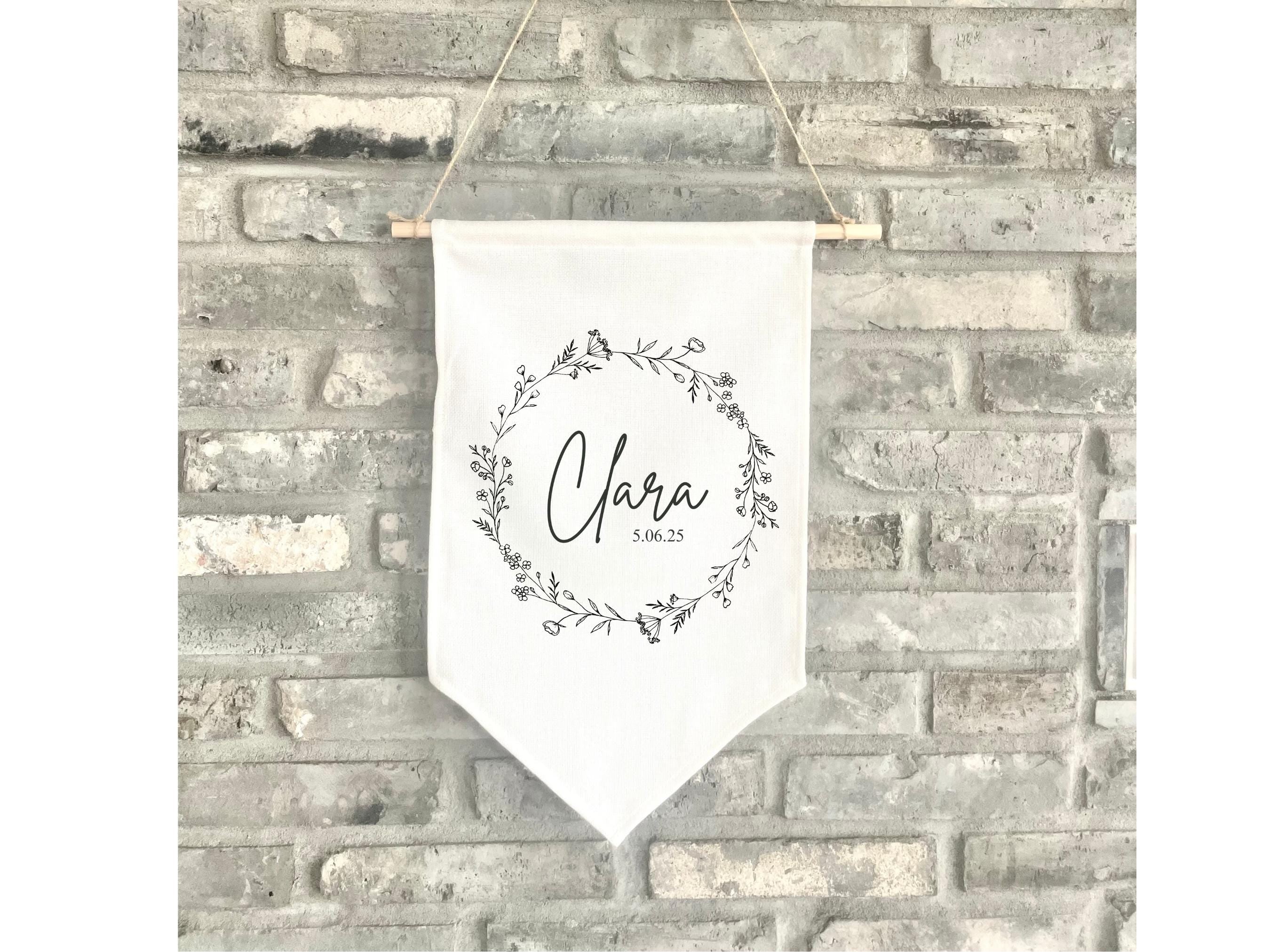 This beautifully crafted canvas sign features a high-quality, soft fabric material and a sturdy wooden stick for easy hanging. Perfect for adding a personal touch to a child's nursery, birthday party decorations, or any special occasion. Customizable with your unique name or message, this handmade banner makes a thoughtful and memorable gift. Ideal for creating a warm, welcoming atmosphere in any room. A must-have personalized decor piece for kids' rooms, playrooms, or as a thoughtful gift for new parents!