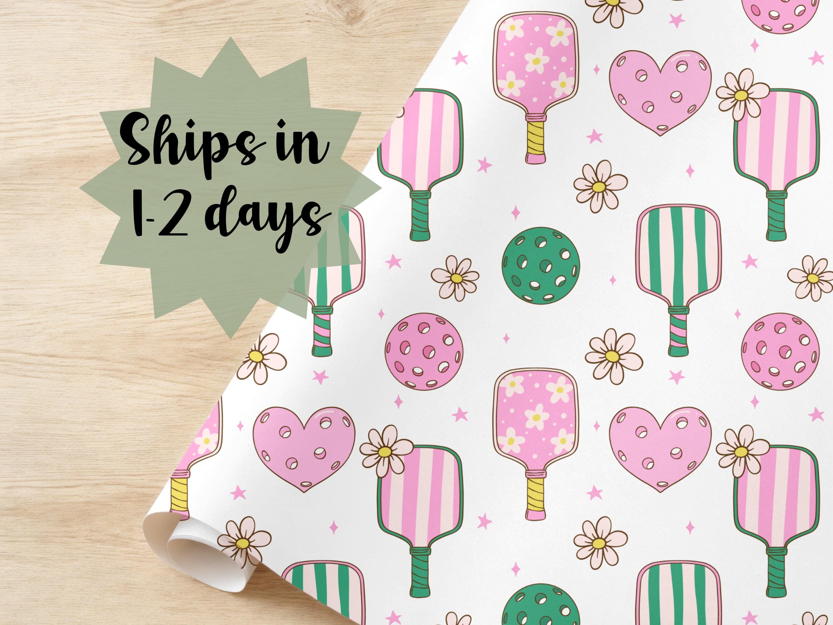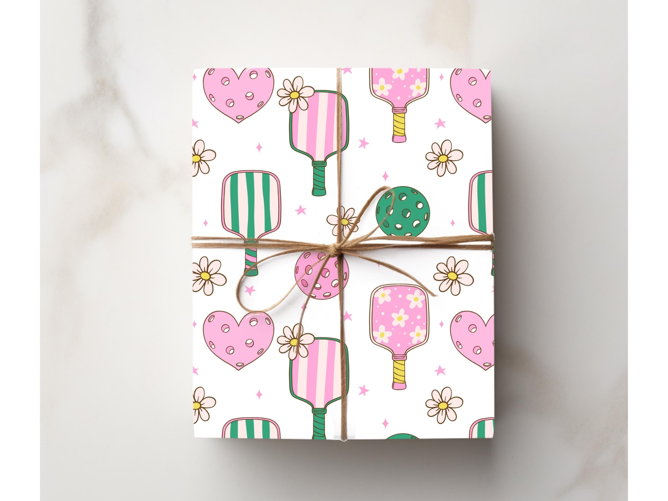 Pickleball Wrapping Paper Girly Cute Gift Wrap Party Theme Coach Gift Pink Green Pickleball Team Gift Paddle Stripe Floral Gift ideas